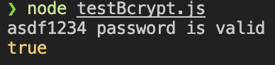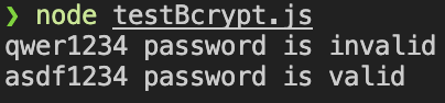 (2)로 생성한 hash로 대조해보자. bcrypt의 compare 함수를 사용한다.