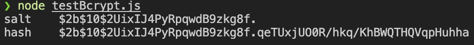 salt를 살펴보면, 처음 부분에 $2b$10 가 있다. $2b 는 bcrypt의 버전, $10 는 saltRounds이다.