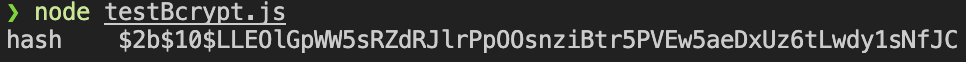 const hash = '$2b$10$LLEOlGpWW5sRZdRJlrPpOOsnziBtr5PVEw5aeDxUz6tLwdy1sNfJC';