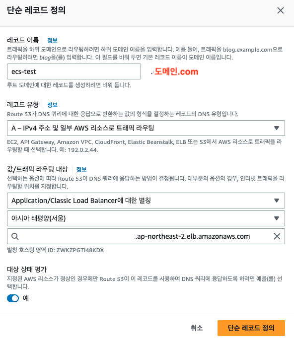 라우팅 대상을 하라는대로 [ALB - 서울 - 로드밸런서]로 잘 선택해주시면 돼요.