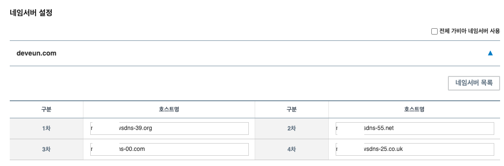 그리고 가비아에 접속해서 네임서버를 설정해줍니다.