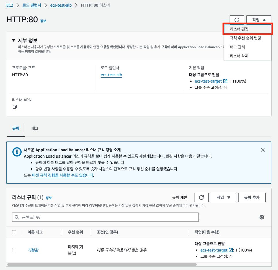 이전에는 로드 밸런서의 리스너 규칙을 HTTP:80으로 설정해주었었죠.