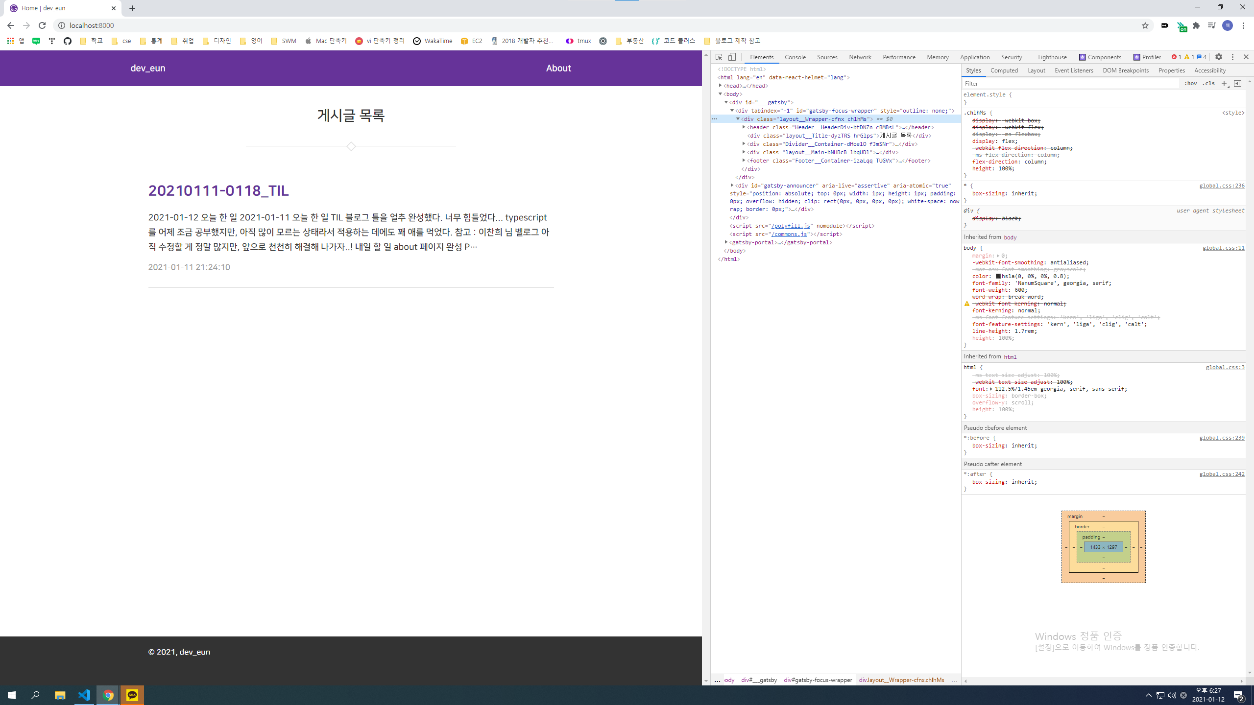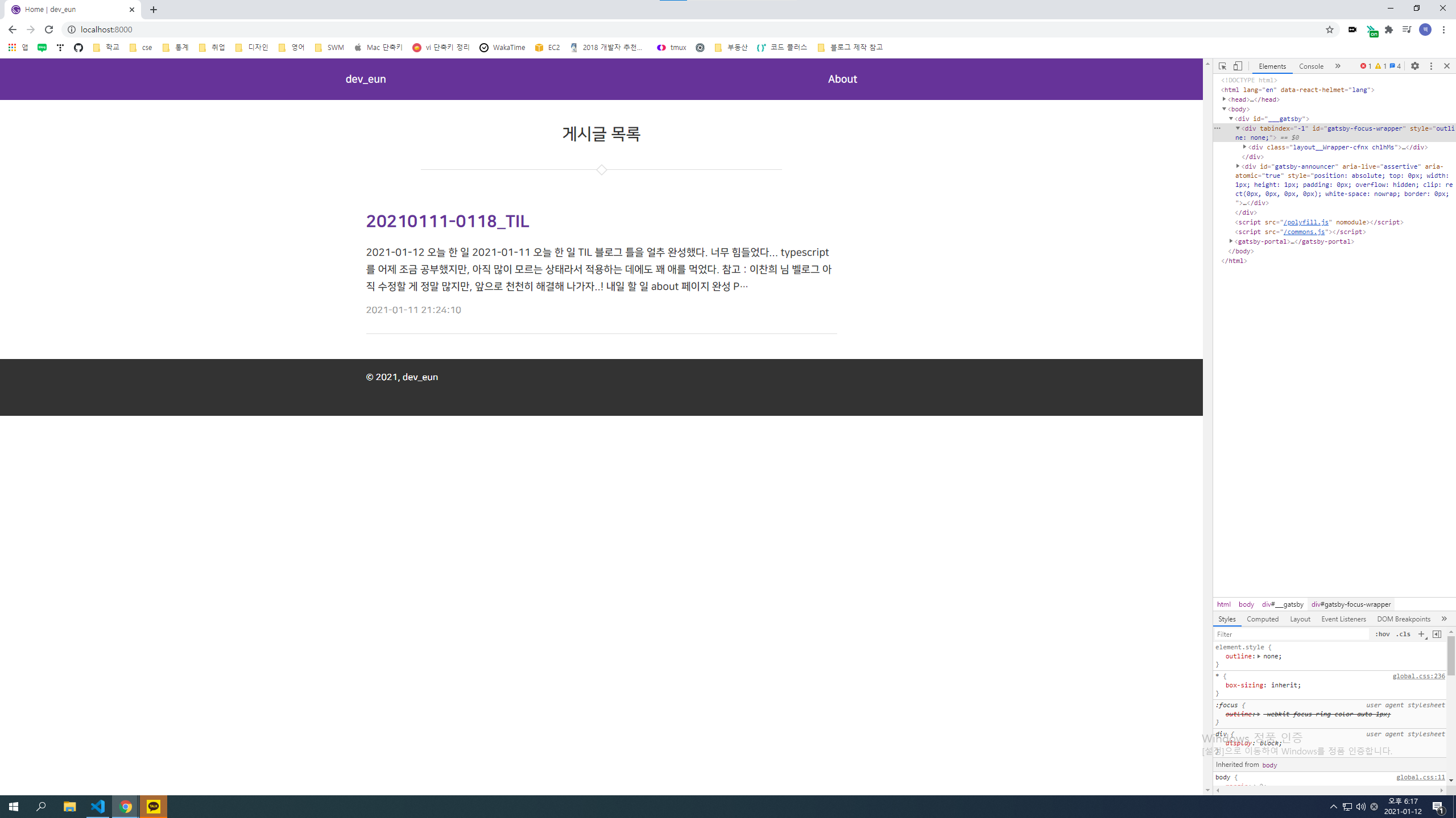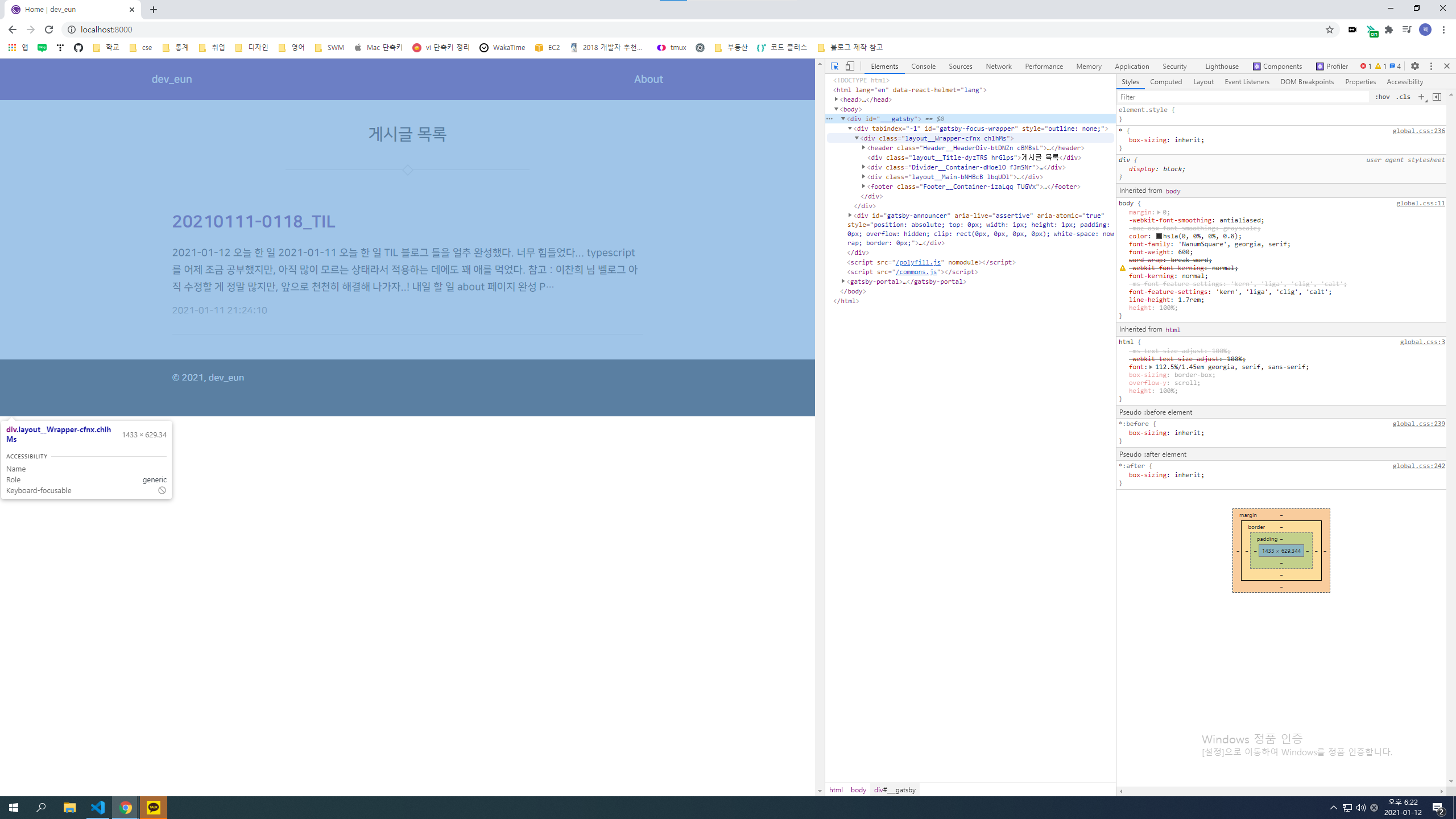 [Gatsby] body, html height 100%로 만들기, footer 설정 본문
